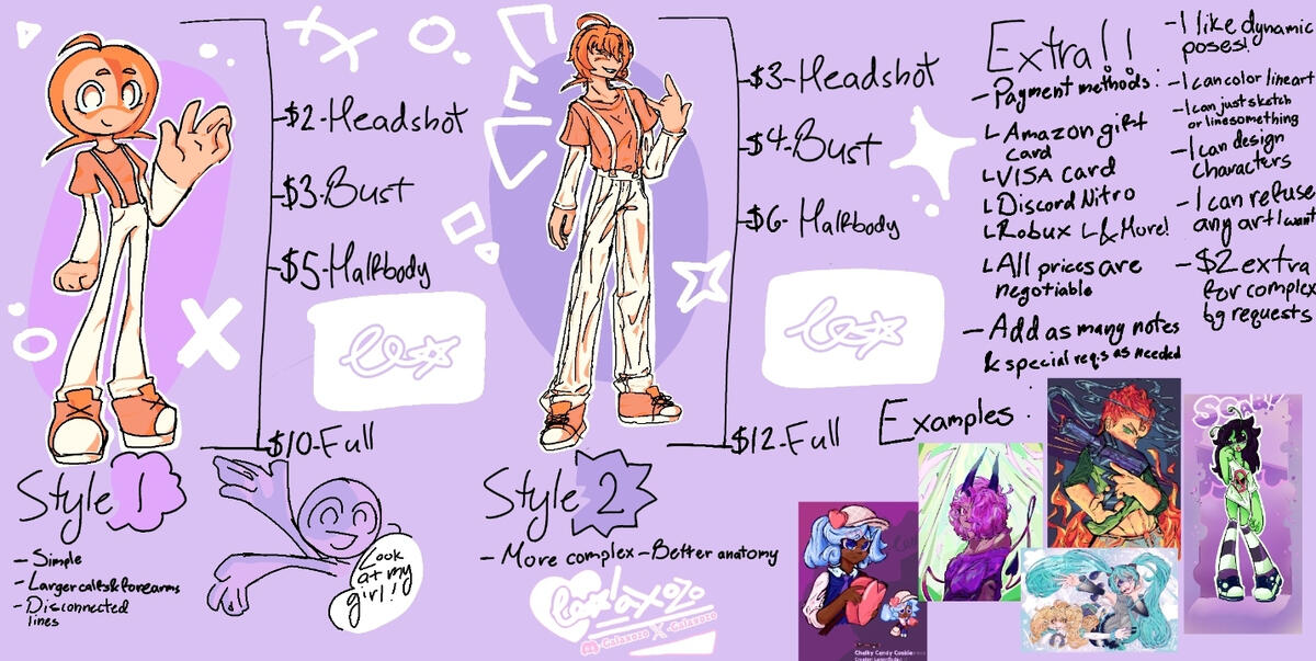 For anyone that would like to commission me!!I do commissions for art and edits, examples on my socials, or you could DM me for someCommission sheet on bottom!!